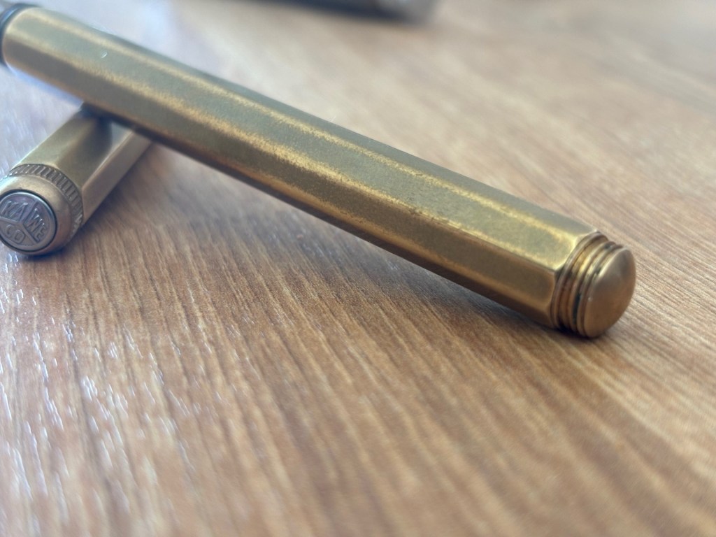In terms of design, the pen looks very simple and sleek, nothing fancy, discreet, which makes the metal brass the point of attraction. When you first use the pen, the brass is shiny, but after some time it gets a certain patina, a natural tarnish that appears on the surface of brass. You can clean this, but be aware after using the pen for a couple of days it reappears. Cleaning the brass is a personal thing.