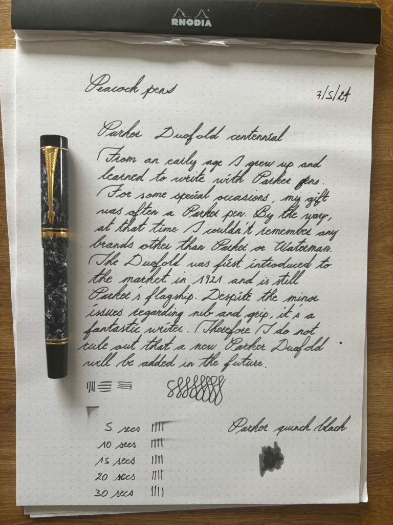 From an early age I grew up and learned to write with Parker pens. For some special occasions, my gift was often a Parker pen. By the way, at that time I couldn’t remember any brands other than Parker or Waterman. The online offer was still non-existent and writing with a fountain pen was related to studying and processing learning material through writing. At that time (80’s and 90’s) there was no question of a fountain pen hobby.