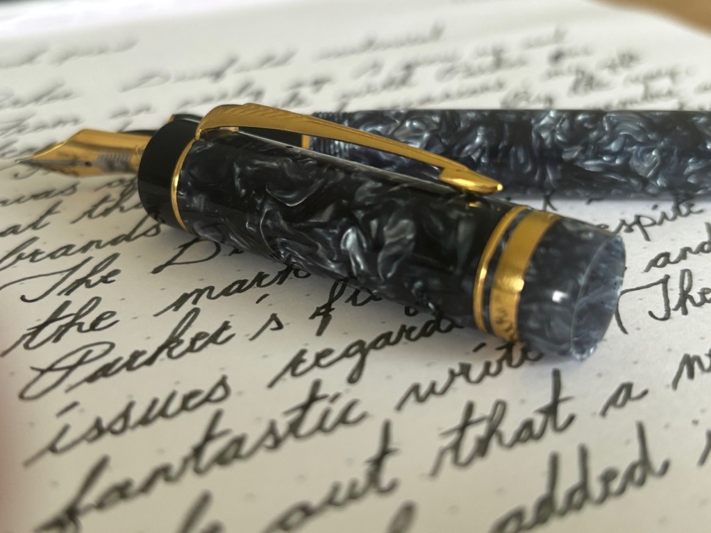 I ponder whether to evaluate this pen for what it is, what it should be, or what it could become. In my view, it’s an excellent pen with significant potential, even for a left-hander. Despite minor critiques about the grip and nib, it writes beautifully. I acknowledge that this pen might not fully embody a Parker Duofold Centennial. Consequently, I remain open to the possibility of acquiring a new Parker Duofold in the future.